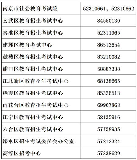 四、南京市各区招考中心咨询电话